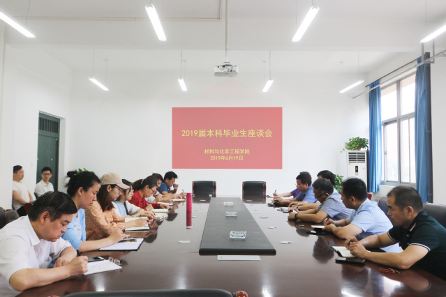 6月19日上午,材料与化学工程学院在科学校区化工楼222室召开2019届毕业生座谈会。学院党总支书记康国磊、院长周立明、副院长尹志刚、副书记宋德涛等党政领导班子成员、各专业系(中心)主任、辅导员及2019届毕业生代表参加座谈。座谈会由宋德涛副书记主持。