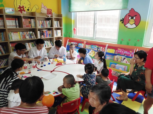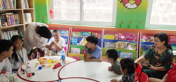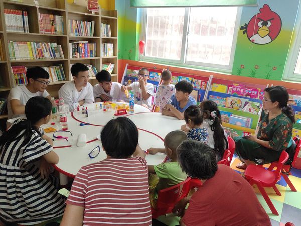 活动开始后,队员们在老师的指导下给孩子们展示了分层实验,并为孩子们讲解实验的原理,激起了孩子们的好奇心。接着,队员们接着引导小朋友们自己动手做实验,实验成功完成时,孩子们脸上也绽放出满意的笑容。随后,队员们向小朋友们讲解了涂鸦的方法、步骤以及注意事项,带领小朋友们做了火山爆发、牛奶动画和调皮的纸团等科学实验,让小朋友们遨游在科学的世界里,共同探索未知的事物。此外,队员们还给当地的居民和小朋友分发了物理知识宣传页,让他们对物理知识有了更深的了解。在过程中,队员们为小朋友们解决了所遇问题,鼓励小朋友们大胆想象并敢于动手实践。最终,一件件作品在实践队员和孩子们的共同努力下最终完成。