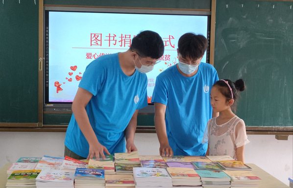 由于基础设施的不完善和图书资源的匮乏,重渠乡小学的图书室并没有能够被很好的利用起来。了解到这种情况后,项目小组成员给孩子们精心准备了一批儿童读物,包罗了学习类、名著类、童话类、兴趣类等书籍,爱心捐赠与重渠乡小学,支援小学的图书室建设。爱心图书捐赠在一定程度缓解了重渠乡小学学生“图书少、阅读难”的压力。面对琳琅满目的图书,孩子们非常激动,欢呼雀跃的围在队员的身边,排队挑选自己喜欢的书籍。队员们指导孩子们根据兴趣挑选图书,并鼓励孩子们利用课余时间多读书、勤思考。拿到自己喜欢的书后,孩子们围在一起相约看完后互相交换图书。通过爱心图书捐赠,让知识得以在乡村小学中传递和共享,为孩子们打开一扇能够放飞梦想的天窗。