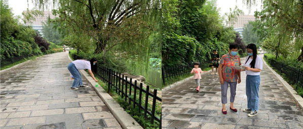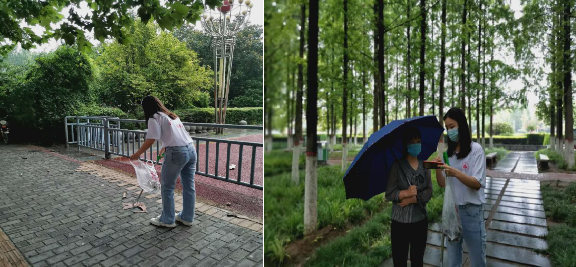捡起一片垃圾,净化一方土地。7月8日,赵金玉同学来到河南省许昌市西湖公园,开启了 “争做环保使者,共创生态文明”环保之旅第一站。在公园中,赵金玉同学捡起的果皮、纸屑、塑料水瓶等垃圾装进随身携带的垃圾袋里。同时,赵金玉主动为公园游客讲解公园环保守则,用实际行动呼吁人们要随时随地保护自然环境,共同创建美丽公园。经历了一天的辛苦,赵金玉深深感受到环保工作人员的不易,也体会到了环保对生活的重要性。