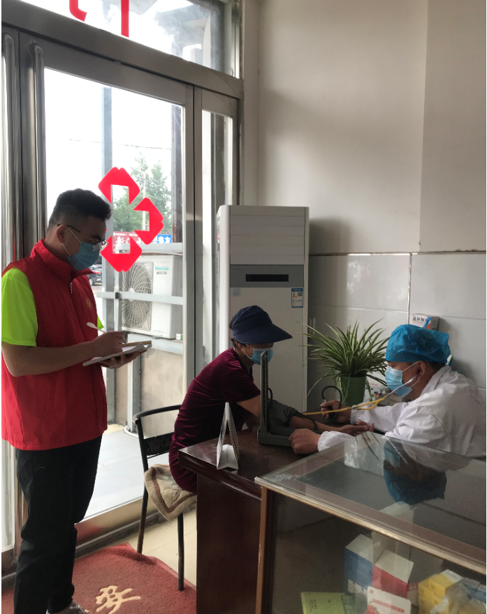 协助社区医生,进行健康随访。 为响应中央号召,助力健康乡村。研究生“美丽乡村志愿者服务队”的志愿者王孟宇,来到了槐店镇华佗路街道华佗路卫生室,协助街道卫生室医生进行为期两天的高血压、糖尿病患者随访工作。因街道居民较多,任务尤为繁重,但在志愿者和卫生室医生的不懈努力下,工作有条不紊地进行。志愿者协助医生询问每一位患者的身体情况、就医体验等,认真做好记录。由于连续几天的大雨再加上患者多为老年人,行动不便,不能到诊所进行随诊,第二天志愿者跟随街道医生对行动不便的居民进行上门走访。王孟宇说:“这次活动的开展让他感到了作为一名研究生党员的责任感和使命感。这次活动让我感受到了乡村医生那种平凡中的伟大。”