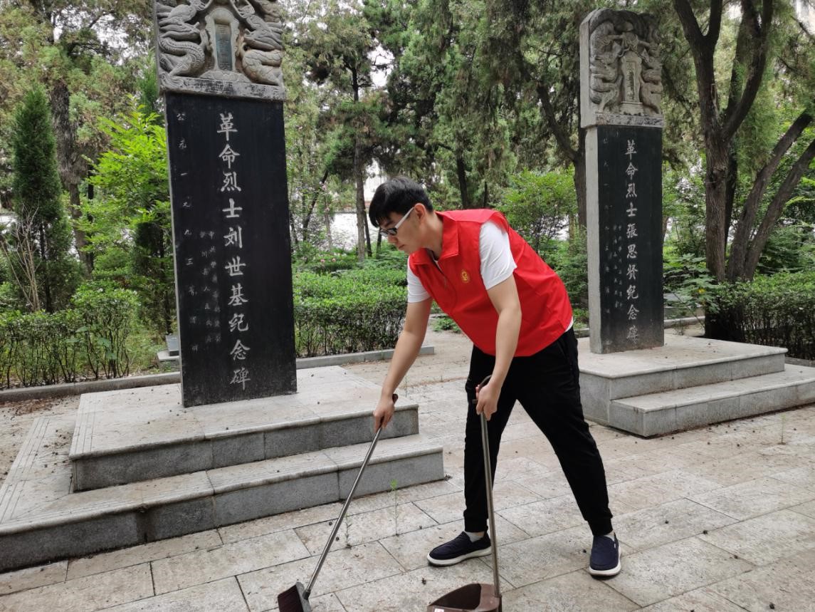 扫墓烈士陵园,缅怀革命先烈。为了缅怀为祖国建设英勇牺牲的抗日先烈,继承革命先烈的英雄意志,弘扬爱国主义精神,研究生“美丽乡村志愿者服务队”的志愿者张焰柄来到了洛阳市伊川县鸦岭乡常川村烈士陵园开展志愿服务活动。由于疫情原因导致陵园内长期未经修整,为了能够早日开放,志愿者与工作人员一起参与陵园的修整工作。志愿者根据工作人员的安排,主要负责清理墓碑附近的杂草和擦拭墓碑的工作。由于工作量较大,志愿者的清扫工作从上午九点持续到了下午四点半。清扫结束后,烈士陵园的工作人员带领志愿者参观了烈士陵园纪念馆,并向志愿者讲解了李士拔、张国禄、郭春年等革命先烈的先进事迹。经过工作人员和志愿者的共同努力,陵园的环境得到了提升,使得烈士陵园可以早日开放。