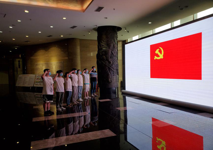 旭日东升、朝阳散落,赶着清晨第一缕阳光,队员们来到位于郑州市二七区的中原英烈纪念馆学习。在现场教学环节,大家聆听了讲解员的解说,深入了解国家近现代发展进程和中国共产党光辉历程,并参观了展厅中的草鞋、机枪、炮弹等数百件经历战火洗礼的历史文物。在革命精神的感召下,队员们在党旗前重温入党誓词,激昂雄壮、铿锵有力的铮铮誓言代表着队员们的坚定的理想信念与责任。
