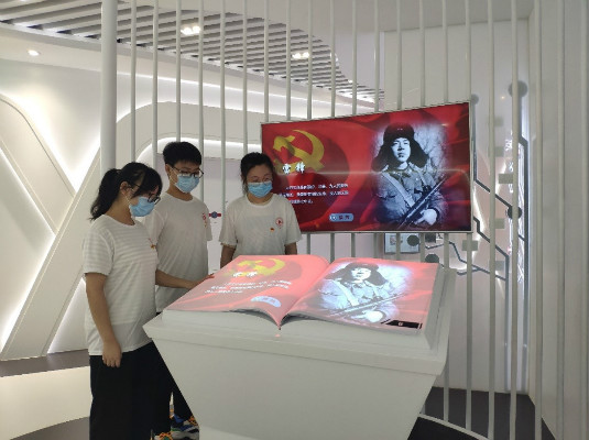 穿梭时光长廊,初识科技成果。电教馆是大桥石化为了深度讲党史、全面介绍大桥石化发展历程和党建工作成果,以声光电为载体,投资600多万元打造的一座高科技展馆,是整个红色家园的一大亮点。实践小队一行饶有兴致地和三连屏、滑轨屏、实体投影翻书机、透明屏、3D拍照等先进设备进行了互动,深受震撼,纷纷表示“形式新奇”“寓教于乐”“记忆深刻”。走入电教馆,首先看到了一面电子滚动屏幕,再现了习近平总书记治理国家的历程。往前走,便是一个个红旗模型,上面写着各种各样的中国精神,如红旗渠精神、雷锋精神等。