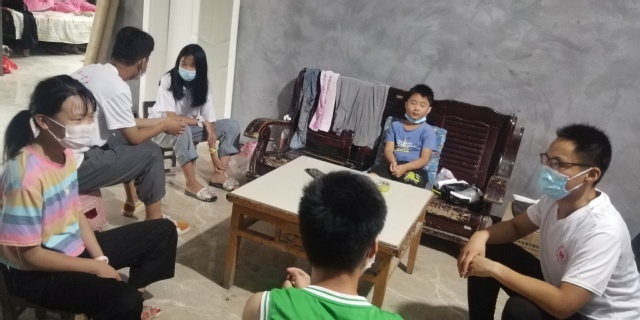 活动期间,队长刘士豪首先通过通俗易懂的动画片给小朋友们讲解防疫知识,讲述抗疫英雄们用生命守护生命的感人故事,在孩子们心中撒下爱国爱家的种子。接着,队员们通过小故事向孩子们提问:“如果我是抗疫小卫士,我会怎么做?”小朋友们踊跃发言,积极参与讨论表达自己的想法和行动。成员们对于小朋友们的回答都给予积极肯定,并告诉小朋友们祖国和抗疫工作者们在对抗疫情中做出的巨大牺牲、付出的艰辛努力。通过故事分享和讨论,让优秀的民族精神和红色基因春风化雨地融入孩子们的血脉中代代相传。在活动结束后,成员们与小朋友们合影留念并护送他们安全到家。