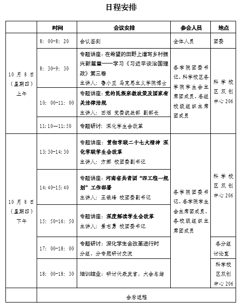 附件: 郑州轻工业大学团学干部学习贯彻习近平总书记青年工作重要思想暨全国学联二十七大精神培训日程安排