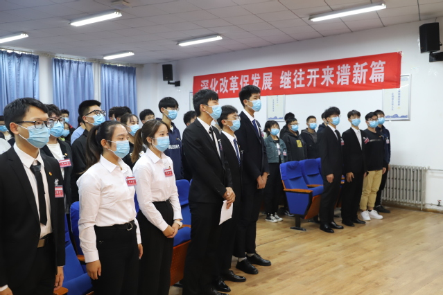 学院党委书记刘吉彬致开幕词。刘书记对上一届学生会切实履行工作职责以及取得的显著成绩予以肯定,并对新一届学生会提出希望和要求:一要聚焦思想引领,强化价值导向,建设政治可靠的学生会;二要践行服务宗旨,助力学习成长,建设同学满意的学生会;三要坚持从严治会,持续深化改革,建设清新阳光的学生会。