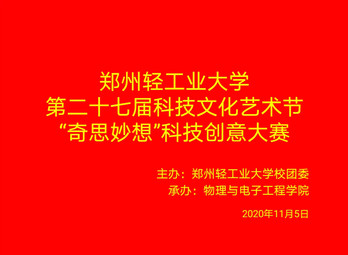 为培养学生的创新精神和动手实践能力,增强学生的科学素养。11月5日中午,由校团委主办,物理与电子工程学院承办的第二十七届科技文化艺术节“奇思妙想”科技创意大赛成功举办,根据疫情防控要求,本次比赛在腾讯会议平台进行。
