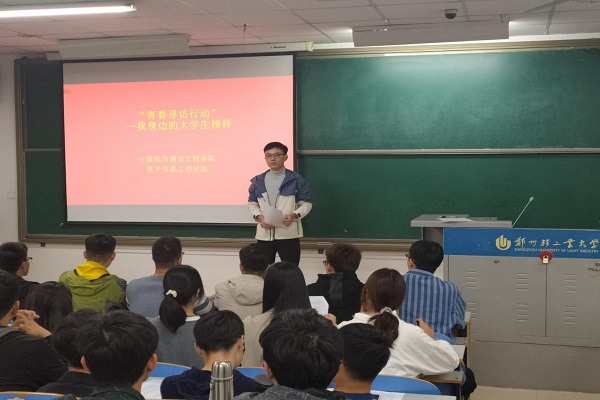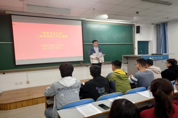 响应河南省共青团号召,为引领广大青年学生深入学习贯彻习近平新时代中国特色社会主义思想特别是习近平总书记关于青年工作的重要思想,创新大学生思想政治教育工作,引导广大青年团员学习身边的典型,为学校发展做出积极贡献,在新时代中原更加出彩伟大事业中建功立业。计算机与通信工程学院于10月26日在二教楼716室举办“青春寻访行动·我身边的大学生榜样”主题活动,2018级、2019级、2020级全体研究生参加了本次活动。
