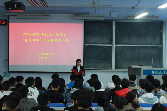 为全面学习贯彻党的十九届五中全会精神,踏上实现“十四五”规划和2035年远景目标的新征程,2020年11月22日下午,机电工程学院在东一楼200举办以“走进‘十四五’,青春正当时”为主题的团课培训。2019级和2020级全体班长和团支书、学院“青马工程”学员参加此次团课。