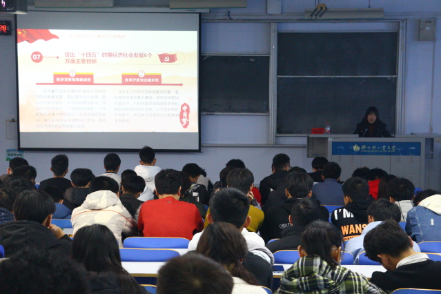 宣讲会上,矫菲老师紧紧围绕习近平总书记在党的十九届五中全会上的重要讲话和全会审议通过的《建议》,从准确把握到二〇三五年基本实现社会主义现代化远景目标,“十四五”时期我国经济社会发展的指导方针、必须遵循的原则、主要目标、重点任务等方面,全面系统阐述了党的十九届五中全会和《建议》的主要内容。矫老师提出希望广大青年学生坚定理想信念、站稳人民立场、练就过硬本领,激扬青春梦,奋进新征程,