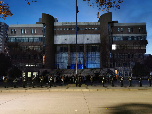 1214日早上,晨雾尚未消散,数学与信息科学学院师生齐聚东风校区图书馆广场前,举行弘扬一二·九精神、担当新时代使命升旗仪式。