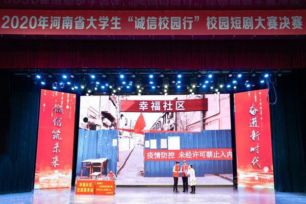 由河南省教育厅、中国人民银行郑州中心支行、中国银行保险监督管理委员会河南监管局和国家开发银行河南省分行联合举办的河南省大学生“诚信校园行”校园短剧大赛,历经校园初赛、赛区复赛和集中决赛三个阶段。在备赛过程中,校党委副书记张志坚要求选送的剧目要充分展示新时代大学生的青春风采,充分体现诚实守信、知恩感恩、勇于担当、自立自强的精神,并对我校承办复赛A赛区的组织工作提出了明确要求。编导老师带领学生紧锣密鼓的排练,逐字逐句修改台词、拿捏语气动作,打磨剧情细节。决赛中,我校的作品寓意深刻,催人奋进,表演娴熟,深深地打动了评委和现场的观众,赢得了阵阵掌声,取得了优异成绩。