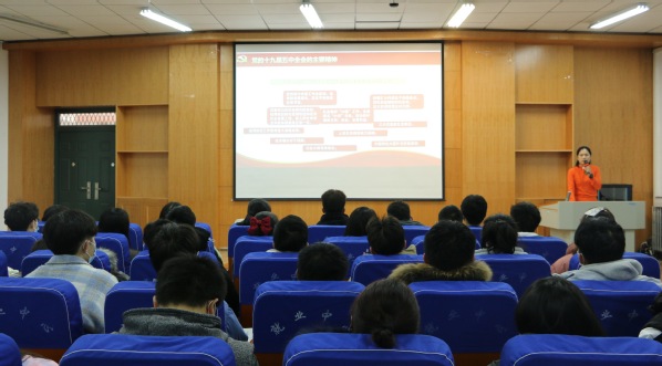 12月17日下午,团省委社会联络部牛晨阳主任莅临我校,以《深入学习贯彻党的十九届五中全会精神——在新征程中勇担青春使命》为题,为我校师生带来了一堂生动的党的十九届五中全会精神专题辅导报告,校团委副书记方娜主持报告会,校院两级“青马工程”学员、学生代表150余人参加报告会。