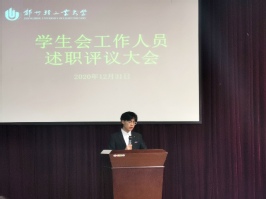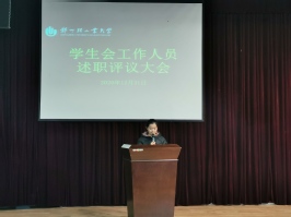为进一步深化学生会改革,更好地总结谋划和推动工作,12月31日,2020-2021学年第一学期校学生会述职评议会在科学校区活动中心208顺利进行,校团委老师、校院两级学生会工作人员代表以及普通学生代表共同参与了此次评议会。
