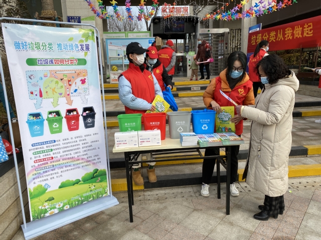 “过期药品、废弃电池、油漆桶等这些都是有害垃圾,含有对人体健康有害的重金属、有毒物质或对环境造成危害的废弃物,一般单独回收或填埋处理。”志愿者们现场开设了“垃圾分类小课堂”,结合宣传材料、模型道具,向居民详细讲解了可回收垃圾、有害垃圾、厨余垃圾以及其他垃圾的正确分类方法。讲解过程中,居民认真聆听,积极提问,志愿者就大家日常生活中垃圾分类遇到的各种问题给予了详细解答, “以往只知道垃圾要分类,具体该怎么分、往哪个垃圾桶里放却搞不明白,你们一讲我就清楚了,回去我要把宣传页贴到墙上,让家人也都自觉养成垃圾分类的习惯。” 社区居民李大妈告诉志愿者。