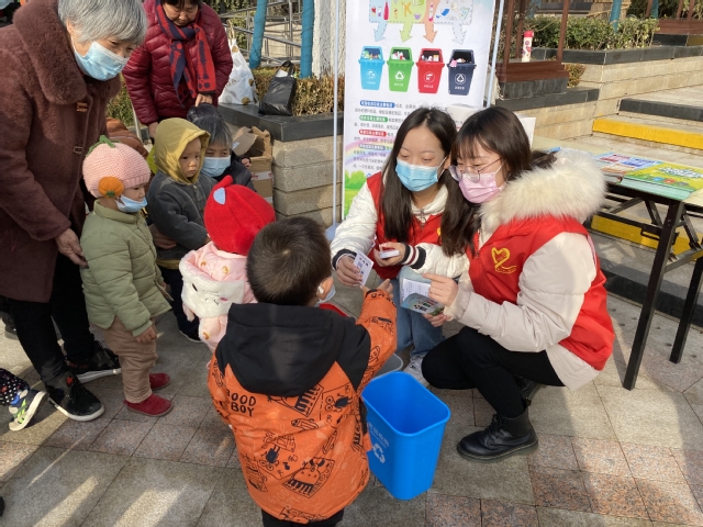 志愿者们向现场的小朋友开展垃圾分类讲解