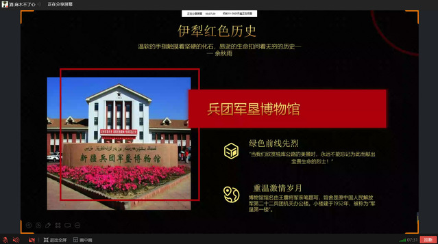 本次活动,同学们通过云合作寻找红色基地,重走红色足迹,追溯红色记忆,通过PPT、视频等方式,有故事、有情节的展示了家乡红色文化。在活动中,同学们深入了解了家乡当地的红色文化,感受了党的红色精神伟力,并通过线上宣讲让更多的同学了解红色故事,坚定使命感和责任感,真正发挥红色文化教化育人、凝心聚力的作用。