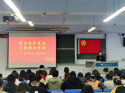 各团支部结合“学党史,强信念,跟党走”主题教育,组织全体学生认真学习党史理论知识,引导青年团员始终在思想上政治上行动上同党中央保持高度一致,进一步增强“四个意识”、坚定“四个自信”、做到“两个维护”。
