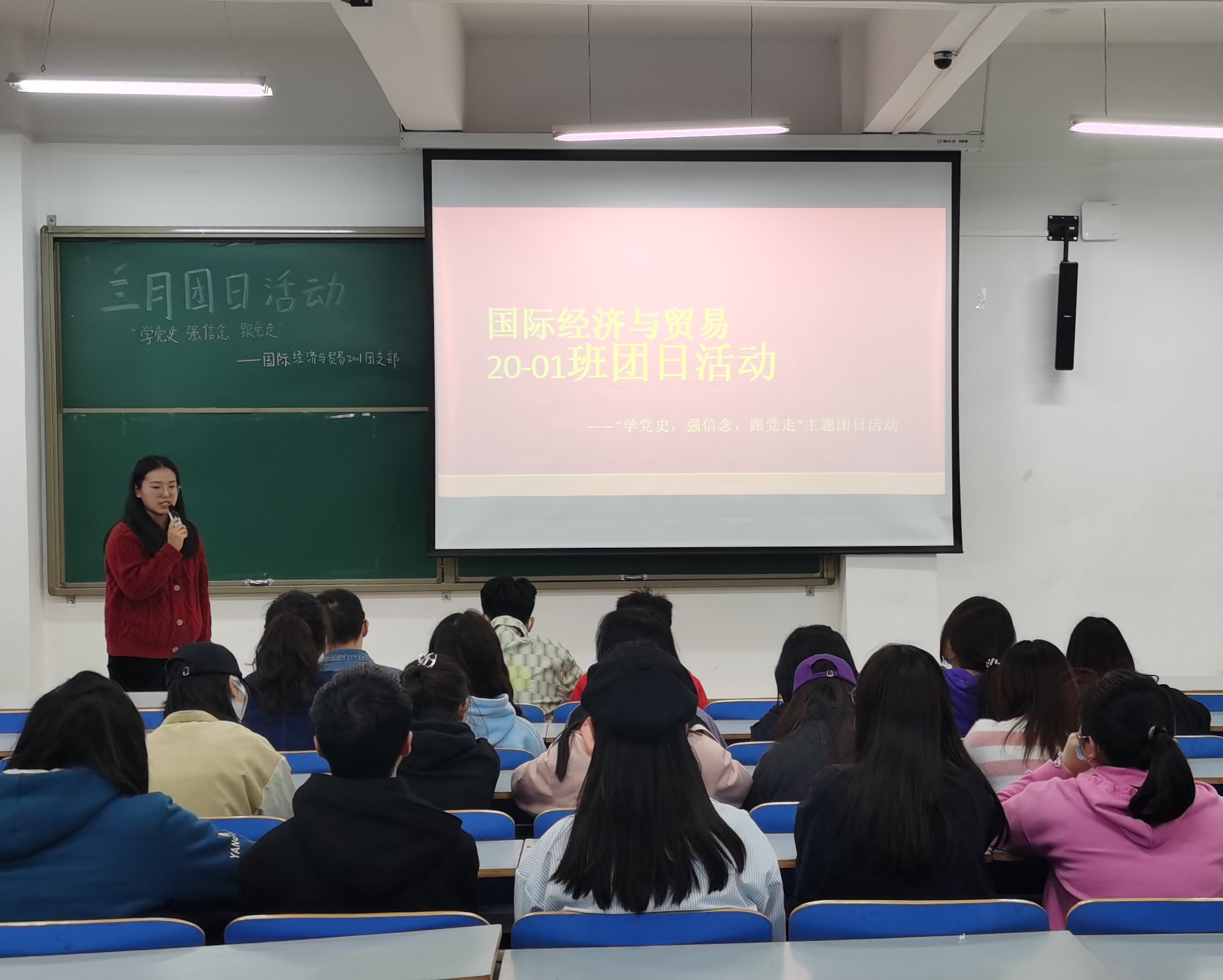 学院在3月初召开了“学党史、强信念、跟党走”主题教育动员会,各团支部积极响应,紧紧围绕学史明理、学史增信、学史崇德、学史力行,坚持理论学习和实践教育相结合,开展了形式多样、内容丰富的主题团日活动。依托团省委专题示范团课,我院国际经济与贸易1901团支部组织专题学习会,带领大家回忆了党的峥嵘岁月,从党的百年伟大奋斗历程中汲取力量,带领全体青年在活动中坚定理想信念,提升党性修养。财务管理1903团支部积极开展学党史主题观影活动,带领支部成员从党史文艺作品中汲取奋进力量。市场营销1801团支部积极组织团员青年参与学党史小程序打卡活动,以赛促学。除此之外,我院还积极开展党史新媒体作品征集活动,拍摄党史专题团课等,利用新形式讲好党史故事。我院同学们纷纷表示,作为当代青年大学生,一定会铭记党的发展历史,牢记革命先烈的嘱托,担当起作为青年大学生的责任,志存高远、脚踏实地,把个人的理想追求融入党和国家事业之中,为党、为祖国、为人民多做贡献。在祖国需要我们的时刻,不遗余力的为祖国的发展建设做出贡献。