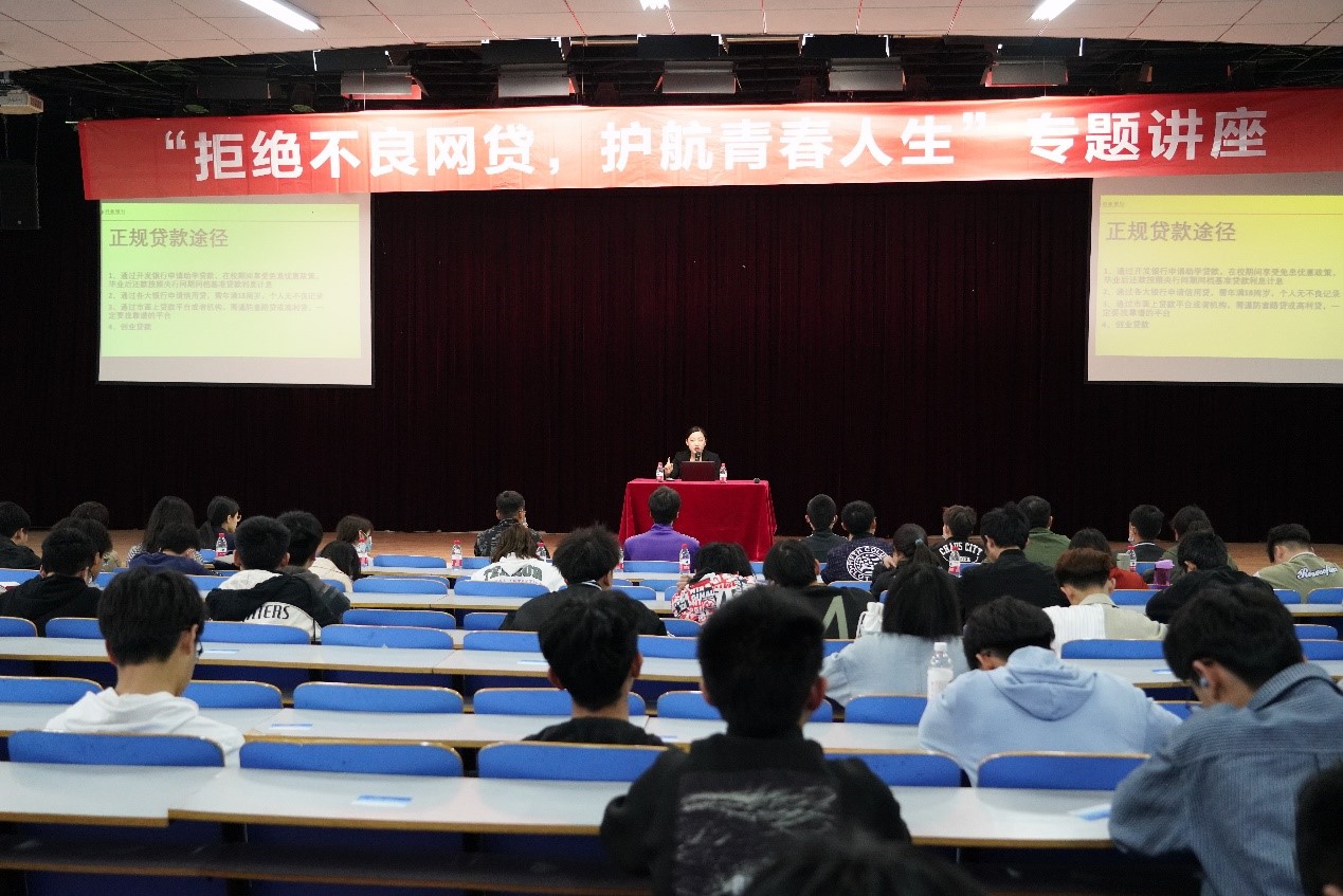 4月8日下午,学校在科学校区活动中心208室举办了金融知识专题讲座,特邀兴业银行郑州经开支行韩阳经理主讲,300余名师生一同聆听。讲解围绕校园贷的概念、不良网贷识别、建立良好征信等方面进行了介绍,提醒同学们增强辨别意识,抵制“低利率”诱惑,保护个人信息,提高防范能力。她结合工作实际分析了“电信诈骗”中常见的钓鱼网站、虚假兼职、伪基站等作案手段,建议同学们在防范金融诈骗方面做到“六个一律”“八个凡是”,强调要理性消费、诚信做人。讲授以案说法、生动鲜活,赢得了阵阵掌声,同学们纷纷表示要树立正确消费理念,争做阳光向上青年。