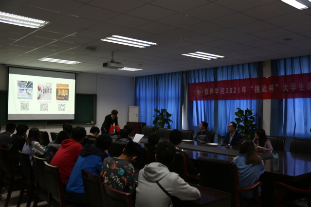 为培养大学生科技创新兴趣,提高学子动手实践能力,遴选校赛优秀参赛作品,4月12日中午,软件学院在软件楼210室举办2021年“挑战杯”大学生课外学术科技作品竞赛院级赛。软件学院党委副书记马欢、院团委书记李辉、学工办副主任王冠玺出席大赛并担任评委。