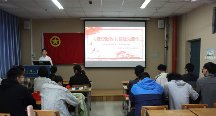 为带领团员青年认真学习贯彻共青团党的十八届五中全会精神,以自己的青春力量向理想致敬,庆祝建党百年,4月11日,材料与化学工程学院组织各年级基层团支部开展以“向理想致敬,礼赞建党百年—学习贯彻共青团党的十八届五中全会精神”主题的团日活动。