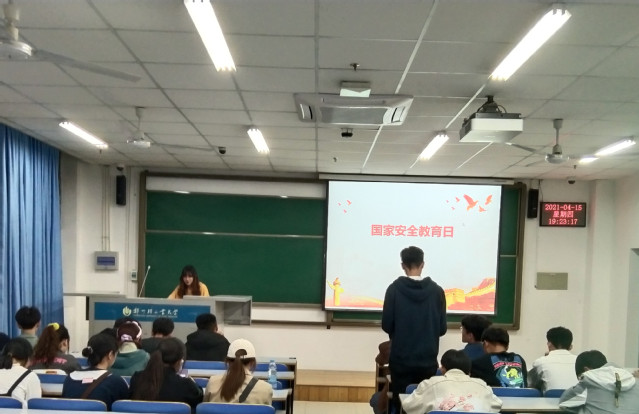 活动伊始,各班团支书通过PPT展示讲解国家安全教育的相关内容,带领同学们认真学习了《中华人民共和国国家安全法》和《中华人民共和国反间谍法》,强调开展国家安全知识教育活动的重要意义。组织同学们观看了“国家安全教育课”教育视频,进一步加深了同学们对于国家安全的认知,最后通过知识问答的方式加深同学们对国家安全知识的理解。