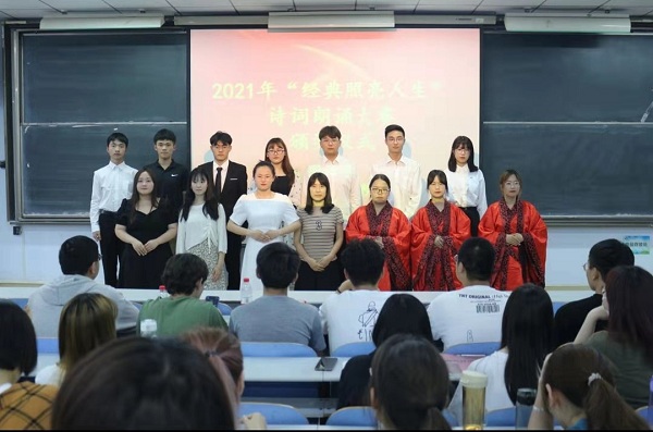 5月27日,我校第二十八届科技文化艺术节之“经典照亮人生”诗词诵读大赛在教三楼104教室举行,大赛由外国语学院承办。经过初赛,来自全校的12个节目参加决赛。