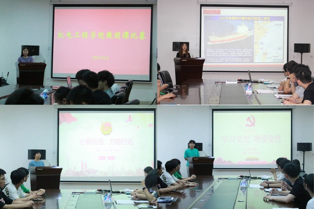 为庆祝中国共产党成立100周年,深入推进党史学习教育,引领广大团员青年坚定不移知党史、感党恩、跟党走,从党的光辉历史中汲取砥砺奋进的精神力量,机电工程学院于6月26日中午,在西三楼215会议室举行“峥嵘百年路,青春展宏图”微团课大赛,学院各年级学生骨干参加了本次活动。