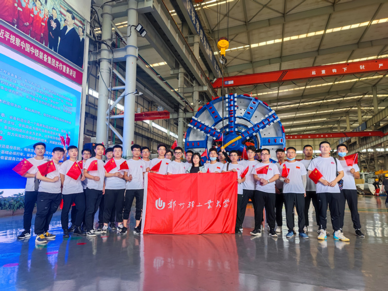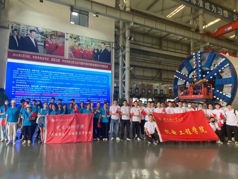 为了进一步深化党史学习教育,实地感受学习习近平总书记“七一”重要讲话精神内涵,2021年7月7日,艺术设计学院和机电工程学院本硕学生代表共计60人组成大国重器寻访团,一同到中铁工程装备集团有限公司郑州盾构总装车间,开展暑期社会实践参观活动。寻访团由艺术设计学院学工办主任霍庆媛老师和机电工程学院研究生办公室副主任李灏萱老师共同带队。