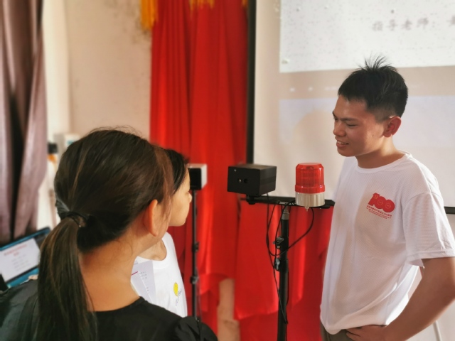 在当地村委会帮助和带领下,黄万伟博士指导的乡村科技服务小分队带着自主研发的智能设备来到了温县招贤乡上苑村的村委会,为村里的中小学生召开了此次宣讲会,给他们介绍智能设备的原理与作用。宣讲会上,面对台上的智能设备,同学们备感好奇。小分队队员用通俗的语言为他们讲解设备的原理和工作方式,并结合PPT为同学们说明这些设施在生活中的应用场景。