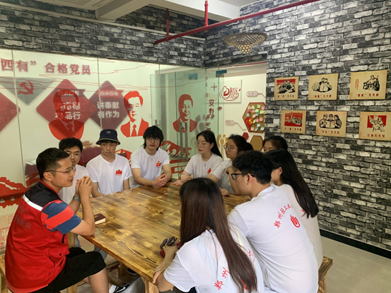 为深入学习中国共产党的艰苦奋斗历史,2021年7月7日下午,软件学院实践小分队在魏冉、李英杰老师的带领下,走进了东风路街道党建壹号工厂进行党史学习教育。