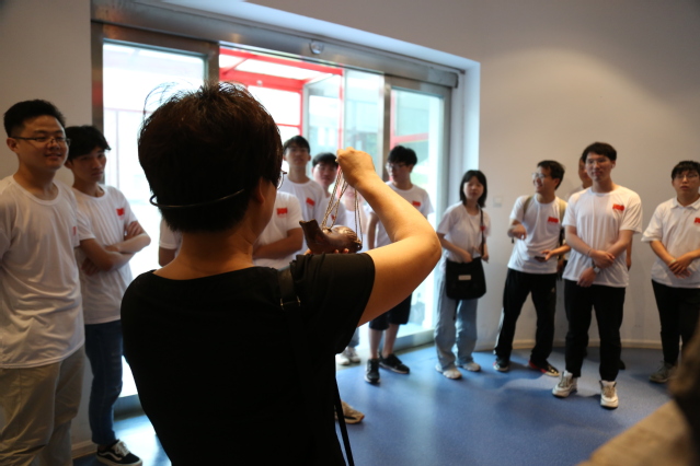 步入西大井1919纪念馆,一面100年以前煤矿工人工作使用过的工具组成的墙让队员们驻足停留,比如一个用绳子吊起的瓷器,队员们纷纷猜测它是干什么的,但是在讲解员的解释中是一种俗称“老鳖灯”的煤矿工人挖煤的吊灯。所有的老物件,都引起队员们对于它背后的文化极大兴趣。