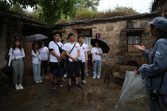 在十二会村,队员们看到一座用泥土夯实的低矮院落,屋内尚存当年机关首长使用的桌椅、板凳、油灯、床铺和取暖、做饭的煤火、炊具、板胡、党章、子弹……古朴而简陋的陈设瞬间把人带回到20世纪40年代的艰苦岁月。在参观革命旧址过程中,队员们忍不住感叹道“祖国繁荣昌盛都是这革命先辈用鲜血换来的!”