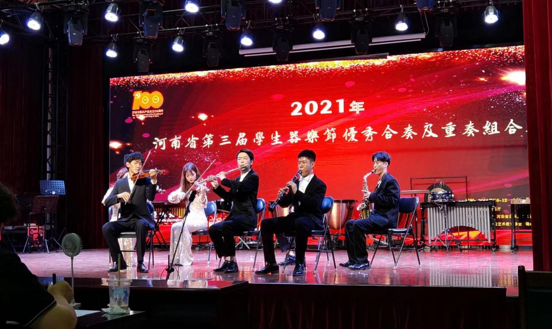自3月份收到河南省第三届器乐节比赛通知以来,学校高度重视,艺术教育中心在做好常态化疫情防控下,积极组队、认真遴选作品、加强节目排练指导,经过校级初赛,评选出2件作品参加省赛。通过网络初评等环节,学校报送的两件作品在全省500余件作品中脱颖而出,最终成功进入省级现场展演决赛。