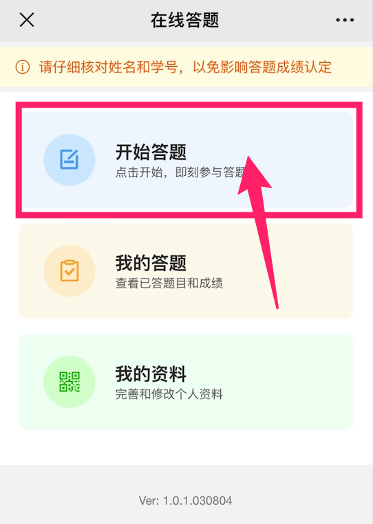 3.登录成功后,点击“开始答题”,按提示完成答题。