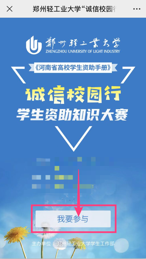 1.微信关注“郑州轻工业大学学生工作部”公众号,回复“资助知识大赛”,点击自动回复的链接参与比赛。