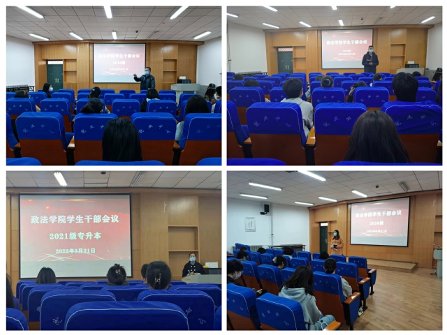 3月31日中午,学院各年级错时分年级在活动中心楼113室召开全体学生干部大会,会上,辅导员老师向学生干部们传达了学校疫情防控的最新指示精神,部署了当前疫情防控的具体工作;要求学生干部要充分发挥模范带头作用,严格落实学校及学院疫情防控工作相关要求;充分发挥老师和同学之间的桥梁纽带作用,及时全面地向同学们传达学校及学院疫情防控具体要求;加强对班级同学的关心,发现问题及时向老师和学院汇报,做细做实班级疫情防控信息摸排工作。同时,学生干部也要督促学生认真学习,为班级营造良好的学习氛围。