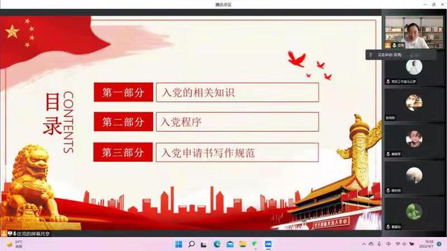 会上,匡竞从“党的基本知识”“入党的程序”“入党申请书写作规范”三个方面进行讲解。“为什么要入党?”引起大家的深入交流讨论,同学们纷纷表示,要从学习、生活各个方面向先进看齐,不断提升自己,以实际行动积极向党组织靠拢。最后,她就大学生如何向党组织靠拢提出了四点要求:一是加强自我思想教育,努力学习党的相关知识;二是积极向党组织靠拢,向优秀党员学习,严格要求自己;三是端正入党动机,强化思想信念;四是不忘初心,迸发出新时代大学生的热情迎接每一项挑战。