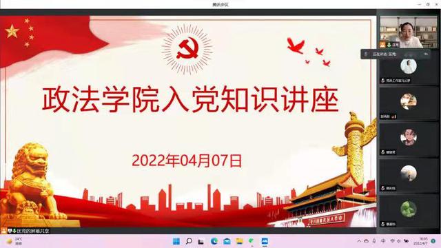 4月7日下午,政法学院举办 “志存高远 一心向党”入党知识讲座,政法学院组织员匡竞和本科生、研究生参加。
