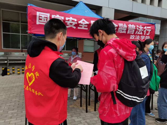 为更好地践行总体国家安全观,进一步提高同学们防范非法集资的意识和能力,4月15日中午,政法学院开展“国家安全教育日”金融安全普法宣传活动。