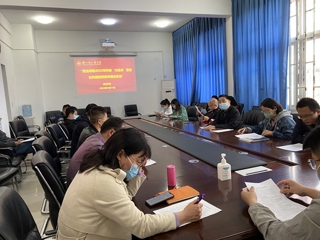 为了进一步提升教师的科研能力,4月14日下午,政法学院在政法楼212会议室召开科研“大练兵”暨河南省社科规划项目申报动员会。会议由政法学院副院长代志明主持,政法学院全体博士和学术骨干参加了会议。