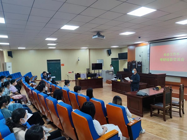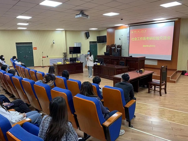 为了进一步提高政法学院学生的考研热情,明确考研目标,掌握相关考研技巧,了解更多考研信息,社会工作系于4月22日和4月27日下午在政法楼112举办了两场考研经验交流会。18级社工作专业考研取得优异成绩的同学在本次交流会上与大家分享了宝贵的个人经验,会议由社会工作系主任徐京波主持。