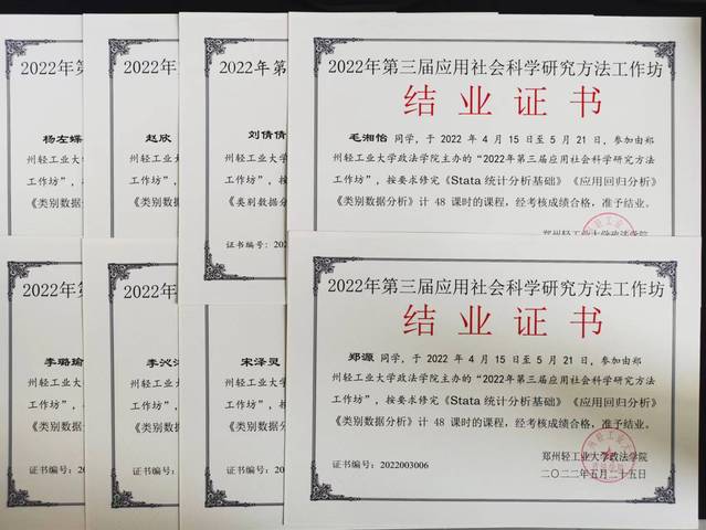 5月25日,政法学院第三届应用社会科学研究方法工作坊圆满结束。本届应用社会科学研究方法工作坊由公共事业管理专业举办,公共事业管理专业各年级学生参加,冯华超博士对本届应用社会科学研究工作坊进行了总结,为学生们颁发了结业证书。