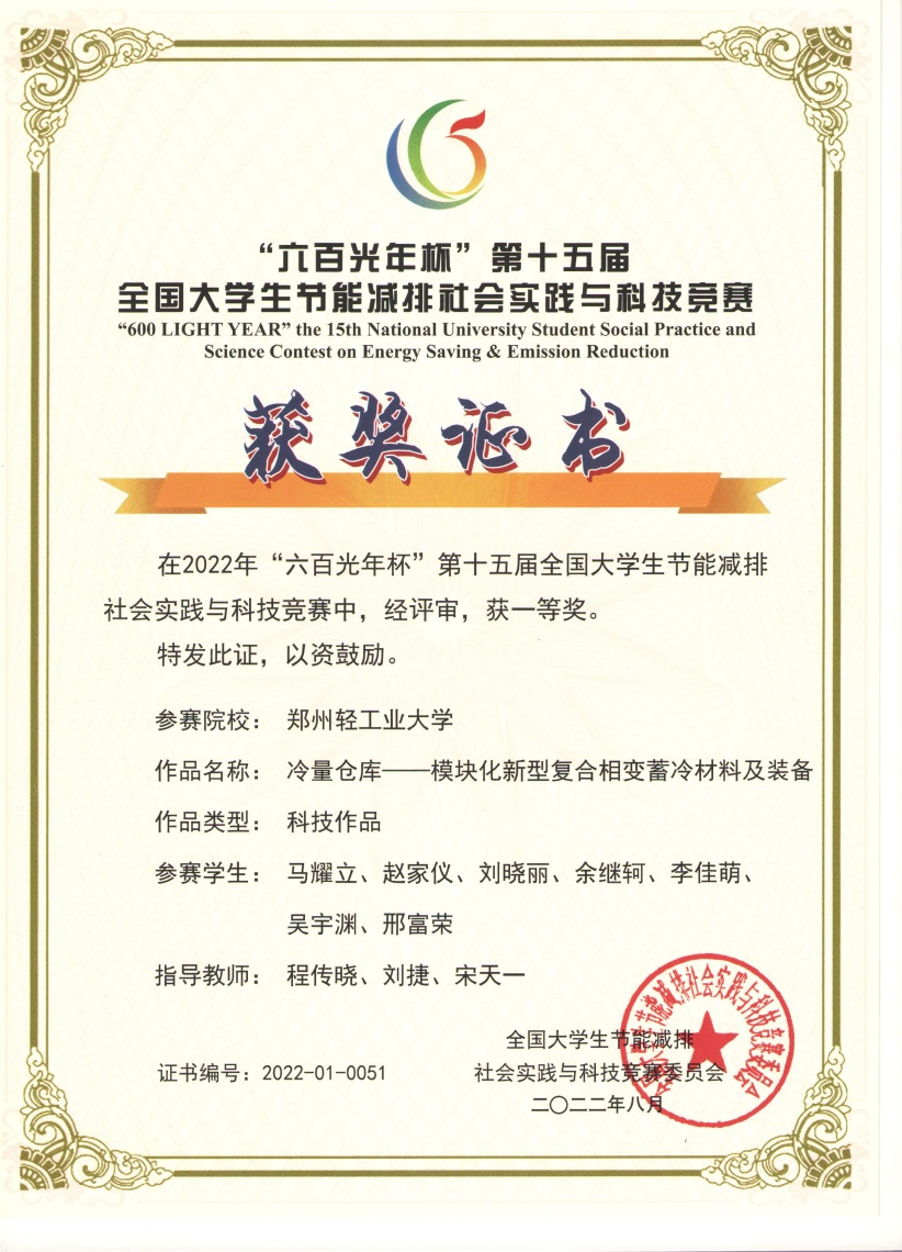 一等奖 | 冷量仓库——模块化新型复合相变蓄冷材料及装备 | 马耀立 | 程传晓,刘捷,宋天一 |