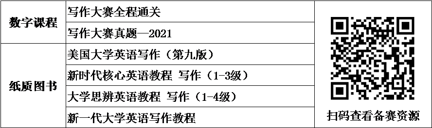 为帮助选手们更好地备赛,大赛组委会在U等生APP“外研社·国才杯”板块推出系列备赛课程,邀请知名写作专家与往届优秀选手指点方法、分享经验;同时,依据大赛考查能力要求,组委会精心甄选备赛推荐书目,敬请关注。