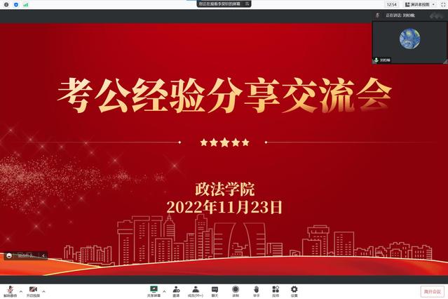 为帮助有考公意向的同学们做好考试规划,提前做好备考准备,11月23日晚上,政法学院召开公务员考试经验分享交流会,会议邀请六位2022届毕业生主讲,学院党委副书记刘放美和有考公意向的一百余名学生参加了交流会,会议由就业专职辅导员李昊轩主持。