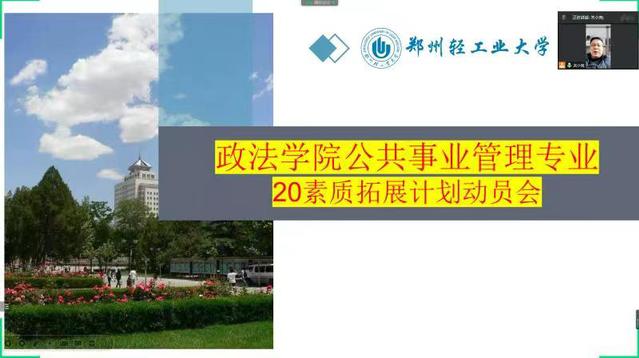 12月7日,政法学院举办了公共事业管理专业学生素质综合能力训练动员大会。公共事业管理系主任关小克、副主任刘晋、张绍阳博士、张家旗博士、冯华超博士以及公共事业管理专业2020级全体学生参加了此次会议,会议由系副主任刘晋主持。