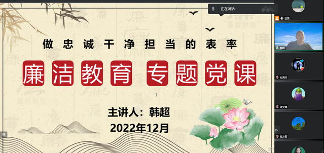 为学习贯彻党的二十大精神,加强研究生反腐倡廉教育,12月16日上午,政法学院院长韩超为2022级研究生讲授廉洁教育专题党课,学院党委副书记刘放美、研究生辅导员匡竞和2022级全体研究生参加。
